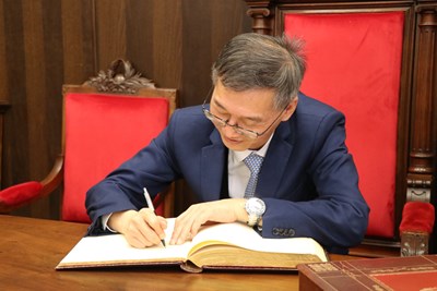 En este sentido, el representante en España del país asiático ha destacado la “avanzada” industria de la ciudad, que considera “muy amistosa para la cooperación con las empresas chinas”, y así lo ha detallado en su escrito al firmar en el Libro de Honor del Ayuntamiento. “Desde la embajada de la República Popular China en España promoveremos la cooperación entre las industrias de ambos países para fomentar la colaboración comercial”, se ha comprometido el embajador en una firma en que agradecía también al Consistorio el apoyo y el recibimiento brindado.