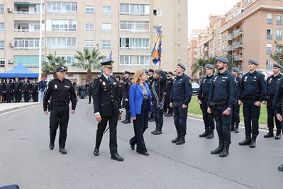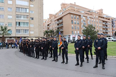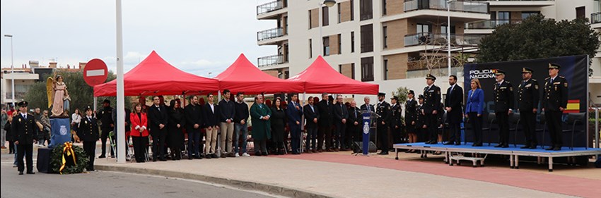 La conmemoración ha dado comienzo con la entrega del Bastón de Mando al jefe superior de Policía de la Comunidad Valenciana, Carlos Gajero. Este ha sido el encargado de depositarlo en su estuche tras pasar revista a la formación junto a la delegada del Gobierno en la Comunitat Valenciana, Pilar Bernabé. A continuación, ha tenido lugar el acto de imposición en el guion por parte del alcalde de Sagunto, Darío Moreno, de una corbata conmemorativa de la concesión de la medalla de oro de la ciudad de Sagunto a la Policía Nacional. Esta concesión fue aprobada en el Pleno de la Corporación Municipal del 30 de septiembre de 2020, con motivo de los servicios prestados durante la pandemia.