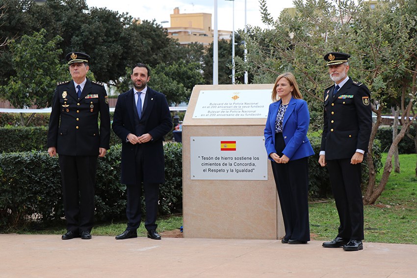 Seguidamente, le ha llegado el turno a Pilar Bernabé, quien ha aseverado que el bulevar de Sagunto “simboliza esa historia que vincula a la Policía Nacional con las ciudades”. Además, ha subrayado el carácter “moderno” de esta institución: “Es uno de los cuerpos de seguridad pública más prestigiosos del mundo y lo es porque responde de la manera más eficaz a las nuevas tipologías de criminalidad que existen en el mundo”.