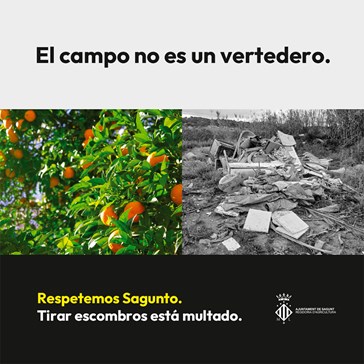La Concejalía de Agricultura del Ayuntamiento de Sagunto pone en marcha una campaña de concienciación ciudadana para frenar el vertido de escombros, principalmente en campos, caminos y otros espacios no autorizados. Estos vertidos están provocando problemas tanto en la propia superficie agrícola como en el acceso a las parcelas y en determinadas infraestructuras.