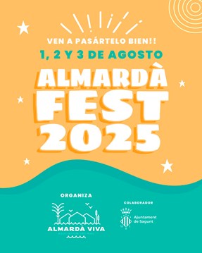 El Ayuntamiento de Sagunto y la asociación Almardà Viva organizan el Almardà Fest 2025, que es la segunda edición de esta festividad. Las fiestas de este núcleo poblacional de la ciudad comienzan hoy, viernes 1 de agosto, y durarán hasta el próximo domingo día 3. La programación cuenta con actividades de todo tipo entre las que se incluyen cenas, pasacalles, paellas y música.