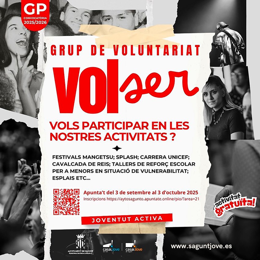 Las inscripciones se realizarán de manera telemática a través de la plataforma de inscripción en línea. Asimismo, las personas interesadas en participar en este programa pueden ampliar la información en el Casal Jove de Sagunto y en el de Puerto de Sagunto, así como a través de www.saguntjove.es.
