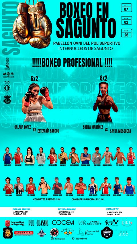 La velada contará también con la presencia de la boxeadora local Clara López. Sobre el ring se enfrentará a la balear Stephenie Sangou en la división de peso ligero.