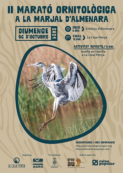 Acció Ecologista-Agró comienza la programación otoñal de actividades en La Casa Penya con el II Maratón ornitológico del marjal de Almardá-Almenara. La jornada para disfrutar y descubrir los tesoros naturales de esta zona de humedales tendrá lugar el próximo domingo 6 de octubre. Cabe mencionar la colaboración del Ayuntamiento de Sagunto, así como el apoyo de Caixa Popular y la asociación Grup Au d’Ornitologia.