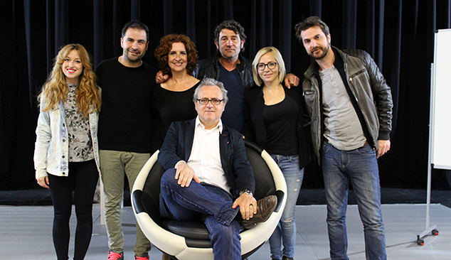 José Manuel Tarazona con el reparto de Amunt l'Sporting