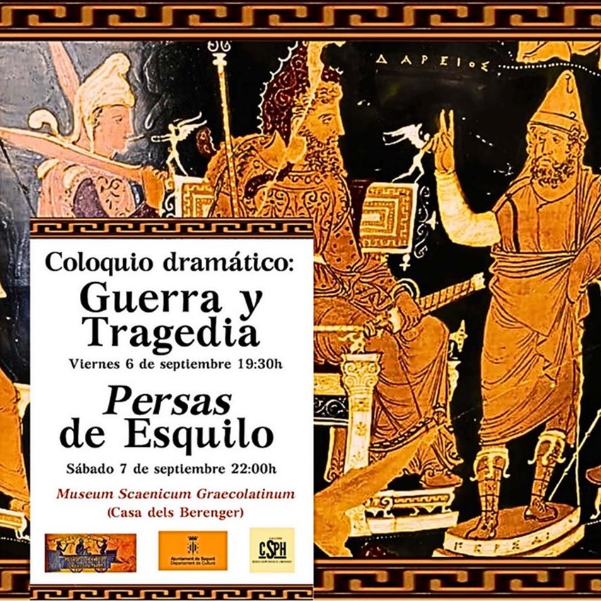 Esta mañana se han presentado en el Ayuntamiento de Sagunto dos nuevas iniciativas sobre cultura clásica en el núcleo histórico de Sagunto. La primera, el coloquio dramático Guerra y Tragedia, que tendrá lugar el viernes 6 de septiembre a las 19:30 horas, y la segunda la representación de la obra de teatro Los persas, de Esquilo, que será el sábado 7 de septiembre a las 22 horas. Ambos eventos en la Casa dels Berenguer, donde también tiene su sede el museo de la escena grecolatina.