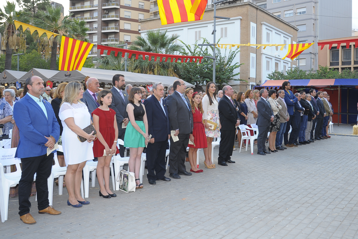 Cabe destacar que el acto institucional del 9 de Octubre también fue multitudinario. Concretamente, algunos de los portavoces de los grupos municipales del Ayuntamiento de Sagunto procedieron a bajar las banderas de Sagunto y la Comunidad Valenciana desde el consistorio. Posteriormente, tras el discurso del alcalde de Sagunto, Quico Fernández, tuvo lugar la actuación del Grup de Danses L’Arenilla de Borriana, Quadre de Balls Populars d’Alginet y del Grup de Danses de Morvedre.