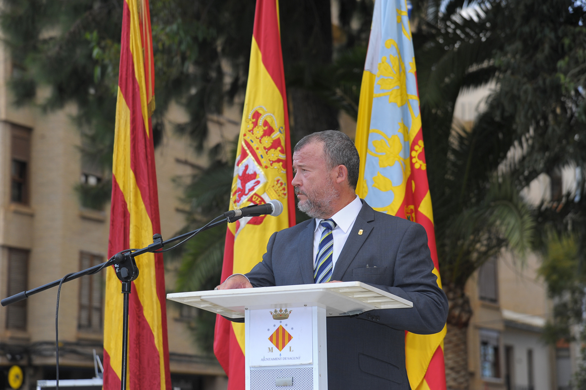 El alcalde de Sagunto, Quico Fernández, destacó en su discurso del acto institucional del 9 d’Octubre la necesidad de una financiación justa para la Comunidad Valenciana y para Sagunto.