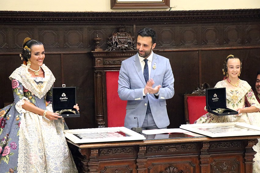 La ceremonia fue presentada por el secretario general de la Federación, Alberto Gómez, y por la vicesecretaria de recompensas, María Moliner. Asimismo, Núria Bueno y Carla Boix estrenaron los trajes oficiales, que son un obsequio del Ayuntamiento, y el alcalde de Sagunto les entregó un cuadro acreditativo y las peinetas oficiales con el escudo de la ciudad.
