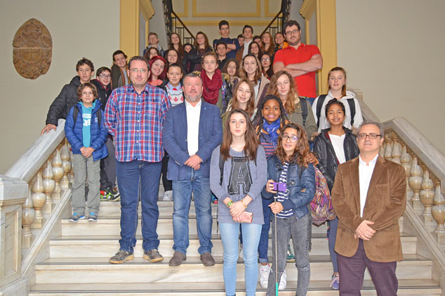 El alcalde de Sagunto, Quico Fernández, ha recibido hoy a los alumnos del instituto Lycée Jeanne d’Arc de Millau, ciudad francesa hermanada con la nuestra, en el Salón de Plenos del Ayuntamiento de Sagunto. En el acto también han estado el delegado de Cultura, José Manuel Tarazona; la concejala de Hermanamiento, María Giménez; y los delegados José Vicente Muñoz y Guillermo Sampedro.