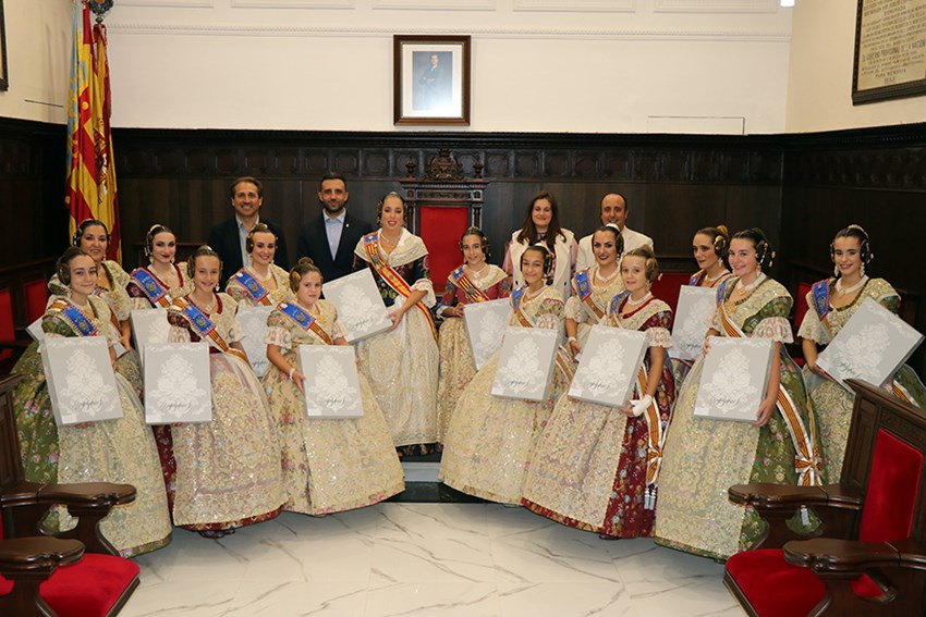 De este modo, el Consistorio ha obsequiado también con el tradicional mantón, como viene ocurriendo año tras año, a Zoe Rubio Mellado, Marta Pomer Cañizares, Cristina Estada Picó, Elba Martín Cosín, Vanesa Gutiérrez Giner y Arantxa Gil Pérez de la Corte de Honor. Y a Irene Rodríguez Ortiz, Elena Marco Herranz, Lucía Segovia Estada, Naiara Sanchis Muñoz, Alejandra Valera Llorens y a Alejandra Diago Gargallo de la Corte de Honor Infantil.