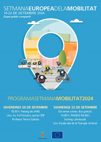 La Semana Europea de la Movilidad 2024 tiene lugar entre los días 16 y 22 de septiembre, ambos incluidos, y por este motivo, la concejalía de Movilidad Urbana del Ayuntamiento de Sagunto ha programado una serie de actividades e iniciativas relacionadas con la movilidad sostenible bajo el lema “Espacio público compartido”. Hay actividades abiertas a la ciudadanía y actividades para los institutos de la ciudad.