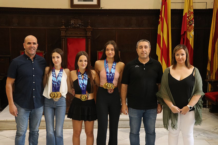 El concejal de Actividad Física, Salud y Deportes, Javier Timón, ha recibido en el salón de plenos del Ayuntamiento de Sagunto a Mara Jurado, Daniela Ojeda y Pau Gimeno, luchadoras del Club de Lluita Camp de Morvedre para reconocerles el mérito de haber alcanzado numerosos triunfos en 2023. En la recepción también ha participado la vocal del club y responsable de los equipos de competición, Ana María Aranda; y ha asistido también el segundo entrenador del club de las disciplinas Lucha Playa, Sambo y Luchas Olímpicas, José Ramón Ojeda.