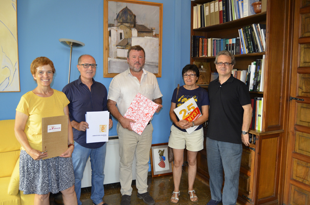 El alcalde, Francesc Fernàndez, y el concejal de Cultura y Educación, Josep Manuel Tarazona, con los representantes de Escola Valenciana.