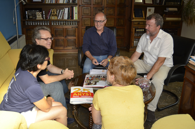 El alcalde y el concejal de Cultura y Educación conversan con el Presidente de Escola Valenciana, Vicent Moreno, y los responsables de la Coordinadora de Escola Valenciana en el Camp de Morvedre, Maria Josep Soriano y Paqui Gimeno.