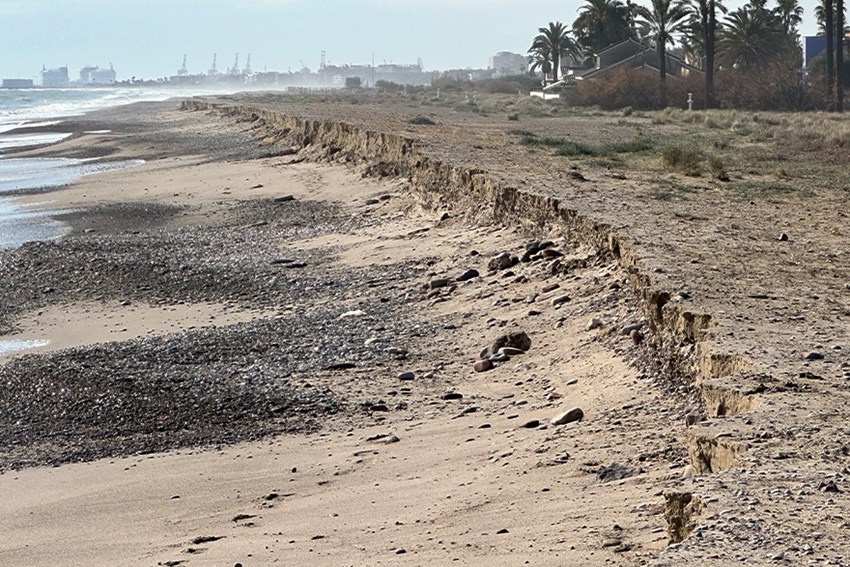 Tal y como explica el concejal de Playas, Roberto Rovira, no solo se han sufrido los efectos del último temporal, «sino lo que es más grave», los efectos de las obras ejecutadas en las playas de Almenara. «El proyecto ejecutado por el Ministerio ya está provocando, como veníamos advirtiendo desde el Ayuntamiento de Sagunto y asociaciones, una importante regresión en la costa, sobre todo de Cases de Queralt hacia el sur. Hemos comprobado taludes que llegan a más de un metro y medio de altura en la zona del camping de Malvarrosa. La regresión ha hecho incluso que el mar destape escolleras que estaban construidas desde los años 80 a la altura de la playa de la Malvarrosa».