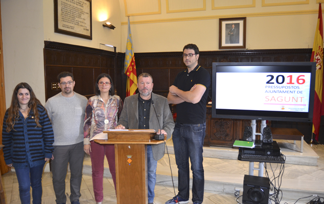 Guillermo Sampedro, Quico Fernández, Teresa García, Sergio Moreno y María Giménez El equipo de gobierno ha hecho público el borrador de los presupuestos del Ayuntamiento de Sagunto para 2016. La delegada de Hacienda, Teresa García, ha estado acompañada por el alcalde, Quico Fernández, los concejales Guillermo Sampedro y Sergio Moreno y otros concejales del Equipo de Gobierno.