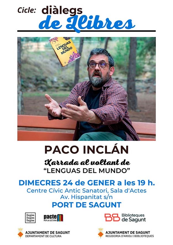 El siguiente invitado al ciclo ‘Diàlegs de Llibres’ será el escritor Paco Inclán. Este autor presentará su nuevo libro, Lenguas del mundo, en el Centro Cívico Antiguo Sanatorio el próximo miércoles, 24 de enero, a las 19 horas.