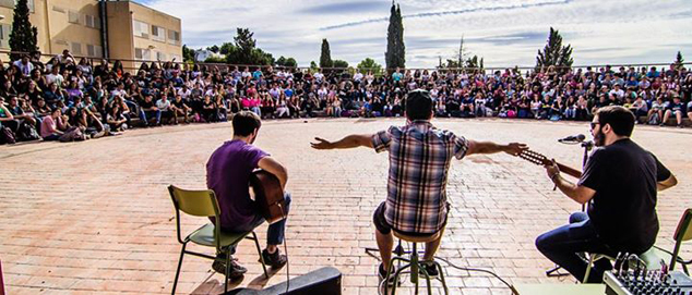 El grupo valenciano Aspencat actuó ayer en los IES Clot del Moro y María Moliner para presentar el festival con gran éxito de convocatoria.