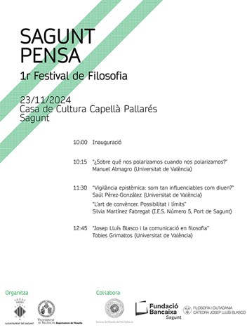 La iniciativa ha sido organizada por el Ayuntamiento de Sagunto en colaboración con la Universidad de Valencia, a través de su Departamento de Filosofía. Cuenta, además, con el apoyo de la Sociedad de Filosofía del País Valencià, la Fundación Bancaja y la Càtedra Josep Lluís Blasco de Filosofia i Ciutadania. Este esfuerzo conjunto busca fomentar el pensamiento crítico y el intercambio de ideas en torno a temas que afectan a la sociedad actual.