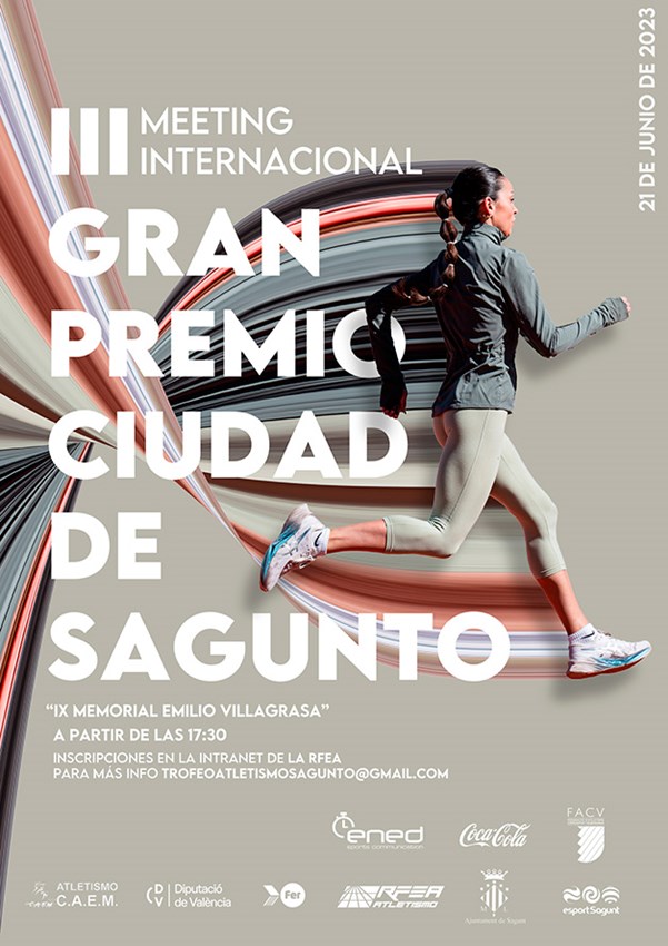 El día 21 de junio se disputará el III Gran Premio de Atletismo Ciudad de Sagunto -IX Memorial Emilio Villagrasa" Meeting Internacional de Atletismo, que comenzará a las 17.30 horas y acabará pasadas las 21.15 horas en el Polideportivo Municipal (internúcleos). La competición está organizada por el CAE Morvedre con la colaboración del resto de clubes de atletismo y triatlón de la ciudad y el patrocinio del Ayuntamiento de Sagunto. Al inicio de la competición se celebrarán dos pruebas de categorías sub16 para que puedan participar atletas locales. A las 17.30 horas será el 600 metros lisos (ml) masculino y a las 17.40 horas el 1000ml femenino.