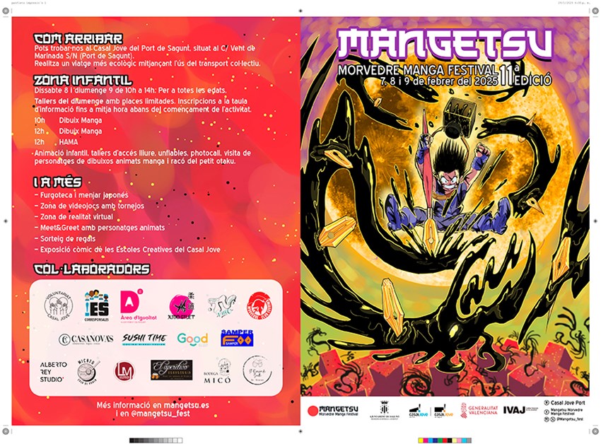 La XI edición de Mangetsu Morvedre Manga Festival se desplegará en el Casal Jove Puerto de Sagunto el viernes 7, sábado 8 y domingo 9 de febrero para divulgar la cultura japonesa entre el público asistente.
