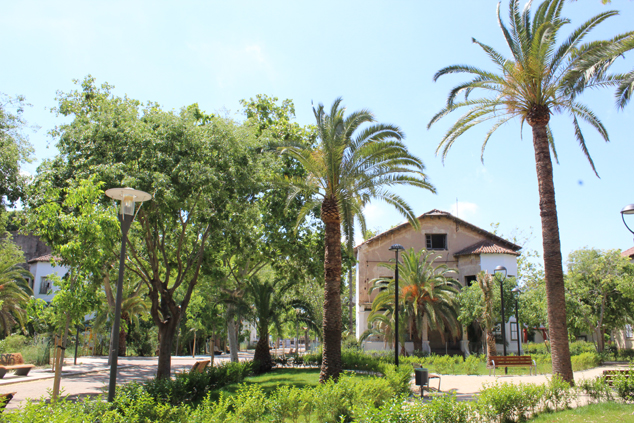 En tercer lugar, tratar el conjunto como un parque urbano que incorpora usos dotacionales. El diseño de este parque permite respetar y aumentar el arbolado existente. También permite consolidar y mejorar la estructura urbana original de la Gerencia, además de potenciar su vocación manifiesta de inserción en la trama urbana de Puerto de Sagunto. La estructura interna que se diseña permitirá en el futuro proyecto resolver los problemas actuales de los bordes y la relación con los espacios libres adyacentes al sur y el este, con los que la Gerencia forma una unidad paisajística desde el punto de vista de la vegetación.