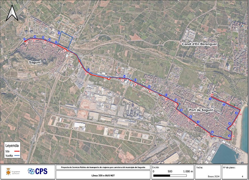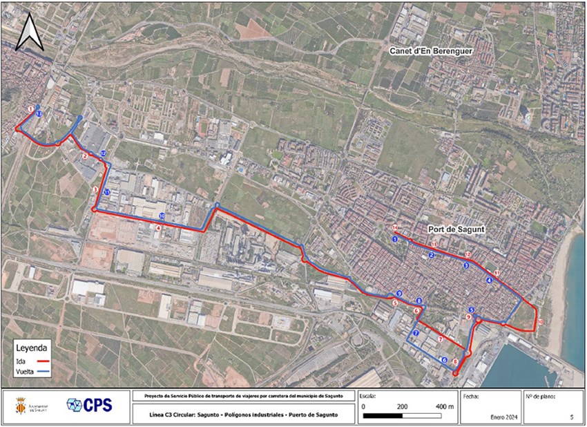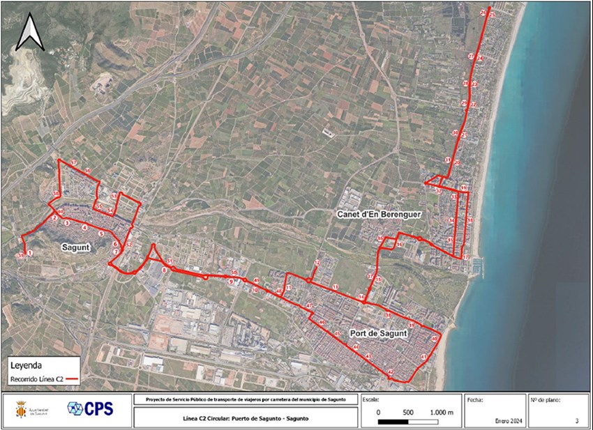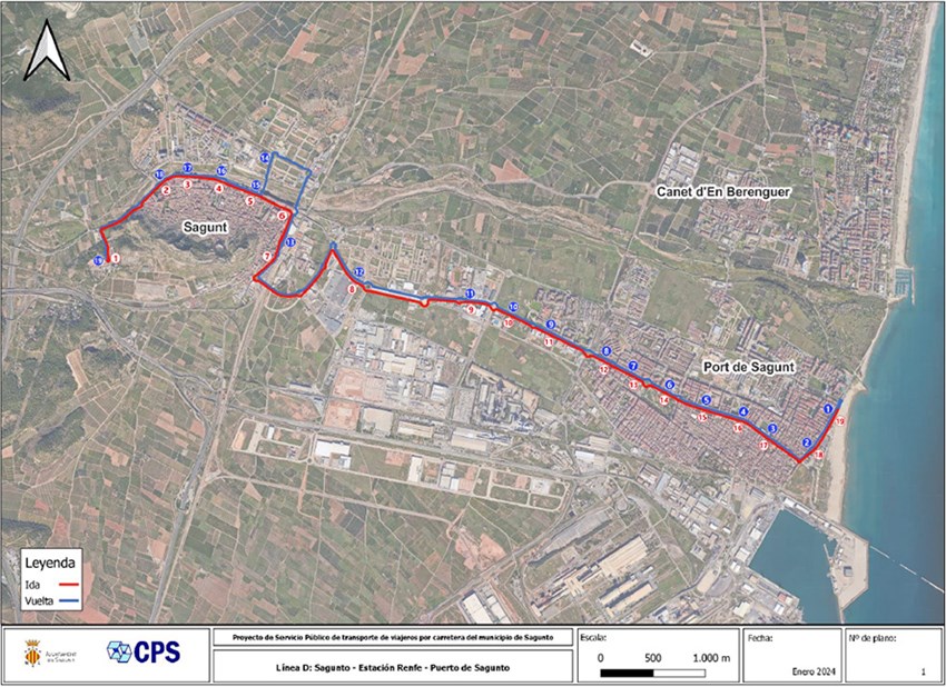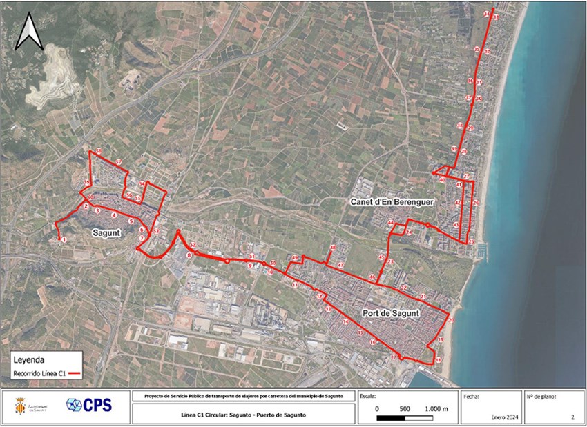 El ámbito de prestación del servicio es el municipio de Sagunto y enlazará los núcleos urbanos de Sagunto, Puerto de Sagunto y Almardà. Cabe destacar que en su recorrido hacia Almardà, el itinerario circula por el término municipal de Canet d’En Berenguer.