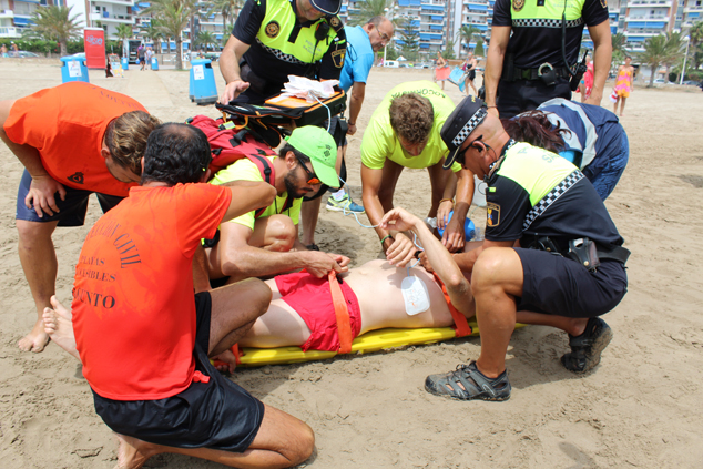 El simulacro ha consistido en el rescate de dos personas: padre e hija. El padre ha entrado al agua a socorrer a su hija y ha sufrido un paro cardíaco, por lo que ambos han tenido que ser rescatados. La hija no ha requerido atención médica, mientras que el padre, lógicamente, una vez rescatado y atendido, ha sido trasladado por la ambulancia. Para el rescate de esta segunda víctima se ha habilitado una zona de seguridad que ha permitido que la moto acuática la trasladara hasta la orilla, donde, entre otras medidas, se le han realizado ejercicios de reanimación cardiopulmonar.