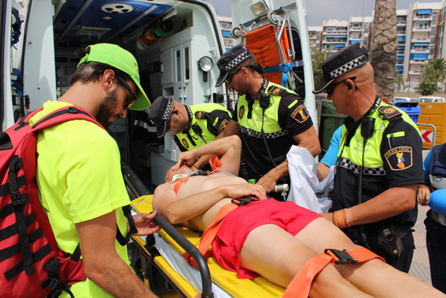El dispositivo que ha participado en el simulacro estaba formado por 7 policías locales, 2 miembros de protección civil, 6 del servicio de salvamento y socorrismo, un médico y un técnico sanitario, así como el piloto y el técnico del dron de salvamento. Además, tras 7 años sin hacerlo, se ha utilizado la embarcación de la Policía Local para este simulacro.