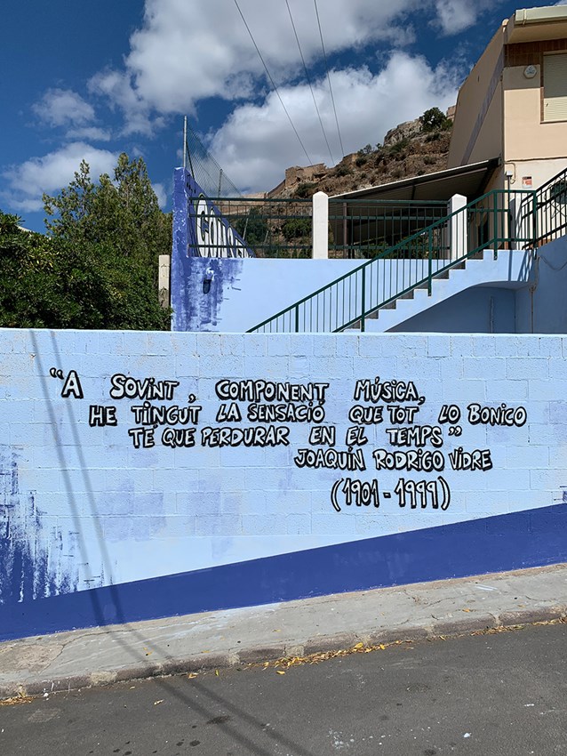 El mural está dedicado al maestro Joaquín Rodrigo, en el muro del conservatorio con su mismo nombre