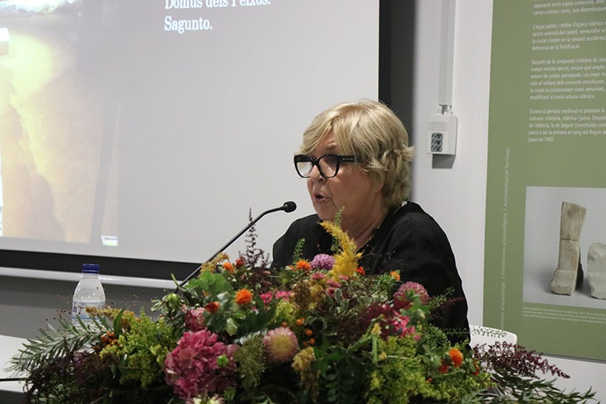 Emilia Hernández, ha hablado en su exposición del recorrido histórico vivido por la ciudad, así como la situación patrimonial en la actualidad. Emilia Hernández es toda una eminencia de la arqueología, la historia y el patrimonio local como así lo acreditan los libros El teatro romano de Sagunto y El museo arqueológico de Sagunto: patrimonio de una ciudad, y las diferentes publicaciones y estudios especializados en la arqueología e historia de Sagunto.