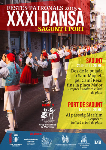 El sábado, 25 de julio, a las 20.30 horas, tendrá lugar la 31ª Dansà en Sagunto desde la subida de Sant Miquel, por la calle Camí Reial, hasta la plaza Mayor. Al finalizar, se realizará el tradicional baile de plaza. El viernes, 14 de agosto, también a las 20.30 horas, comenzará la 31ª Dansà en Puerto de Sagunto en la zona del Paseo Marítimo. Posteriormente, se iniciará el baile de plaza. Cabe destacar que en estos eventos participarán bailarines de varias poblaciones valencianas.
