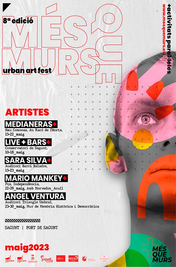 Uno de los muros del Auditorio Triángulo Umbral de Puerto de Sagunto será pintado por Àngel Ventura, que estará dedicado a la Memoria Histórica y Democrática. El artista urbano Mario Mankey, que ya participó en la VII edición del Més que Murs, será el encargado de decorar una pared de la Plaza de la Independencia. Por su parte, Live + Bars grafiteará un muro del Conservatorio Joaquín Rodrigo de la calle Lliria y una pared del auditorio del barrio Baladre será pintada por Sara Silva.