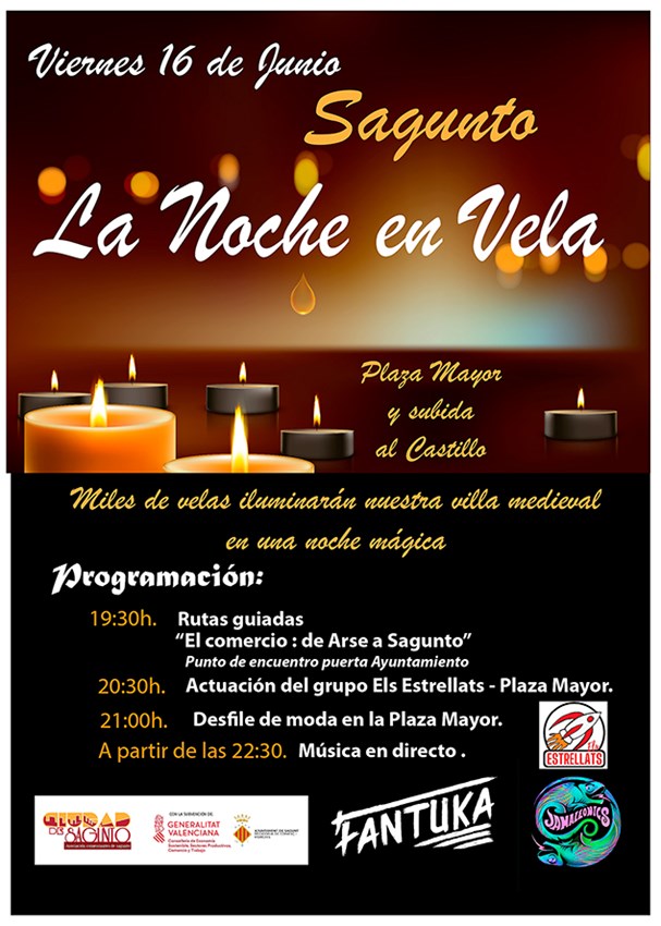 La Asociación de Comerciantes Ciudad de Sagunto celebra el 16 de junio la 11ª edición de la Noche en Vela, una iniciativa con la que se pretende dinamizar el comercio local y que se desarrollará desde las 19:30 hasta las 01 horas con diferentes actividades.