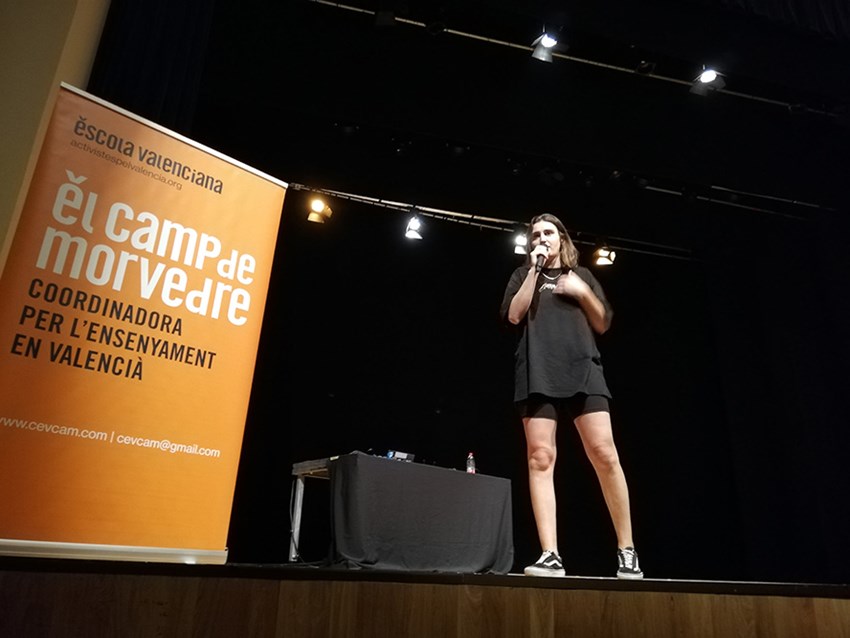 Este martes 9 de mayo, la cantante Colomet ha visitado el Auditorio Joaquín Rodrigo de Sagunto para hacer un taller de música en valenciano al alumnado de los institutos de la ciudad. La actividad está incluida en la programación de la Coordinadora per l’Ensenyament en Valencià del Camp de Morvedre (CEVCAMP), que el próximo 13 de mayo celebrará el festival Fescamp en Benifairó de les Valls, y con este taller preparativo se pretende que tenga una buena aceptación entre el público juvenil. Han participado alrededor de 300 alumnos de los institutos Clot del Moro, María Moliner y Jorge Juan.