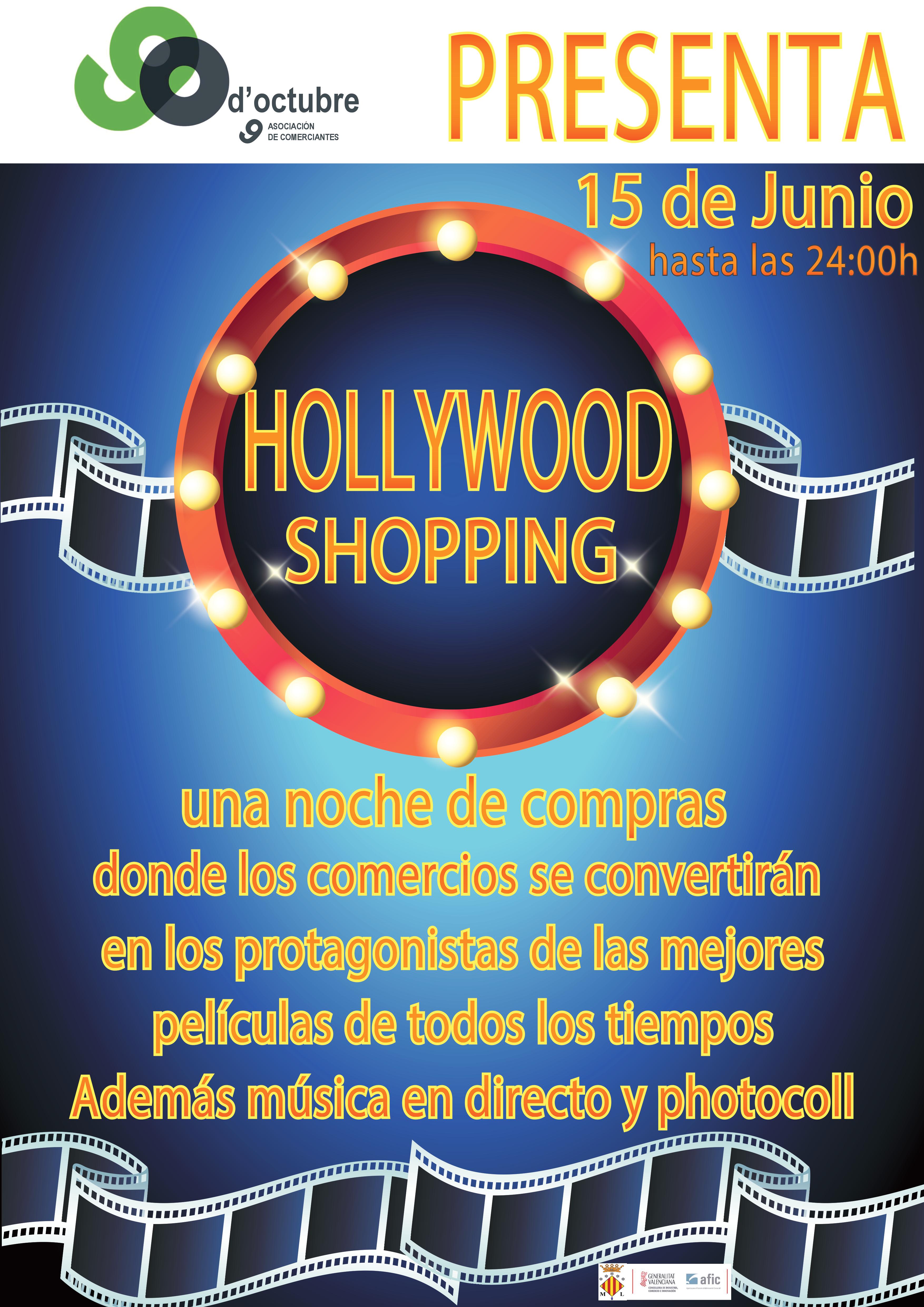 ​La delegación de Comercio del Ayuntamiento de Sagunto colabora con la “Shopping night-Hollywood”. Este próximo jueves 15 de junio, desde las 20.00 hasta las 24.00 horas, los comercios de la avenida 9 de Octubre se vuelcan con sus clientes.