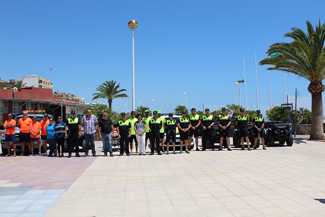 Por su parte, la Policía de Playas dispone de dos quads, así como vehículos patrulla y otros recursos. El servicio de limpieza, además de los medios habituales como máquina fregadora, sopladores y furgonetas auxiliares, cuenta en este caso con máquinas limpiaplayas y tractores.