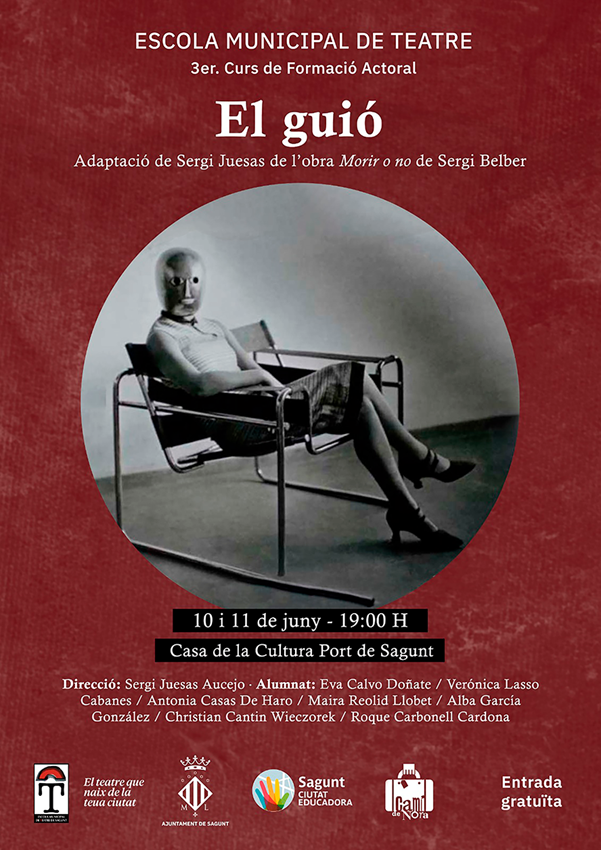Los días 10 y 11 de junio, a las 19 horas el 3er curso de formación actoral representará El guió en la Casa Municipal de Cultura de Puerto de Sagunto. Esta obra es una adaptación de Sergi Juesas de la obra Morir o no de Sergi Belbel.