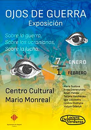 Ojos de Guerra es el título de una exposición sobre el conflicto de Ucrania que se inaugura hoy a las 19 horas en el Centro Cultural Mario Monreal. La comunidad de artistas contemporáneos Locura De Verduras es la promotora de esta muestra compuesta por 27 lienzos, 30 fotografías y 2 obras textiles que pertenecen a artistas de origen ucraniano.