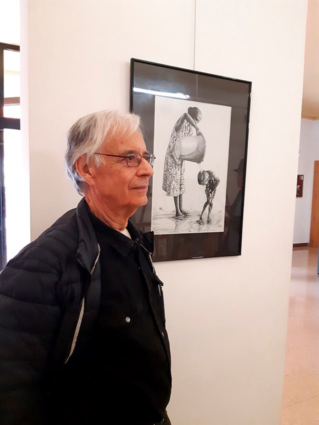 Finalmente, y ya saliendo, en el lateral derecho de la sala, cuelga una muestra de su variado catálogo de litografías y de imágenes digitales. A tinta china y con virtuosismo evidente, se muestran alegorías de enfermedades y otros traumas, como el sida, junto a temas más amables, como los desnudos de Pasión. Destacan las curvas casi fractales de la composición Fice de Arse; el psicodélico verde llamado Olas, con un amable rostro femenino emergiendo de la espuma; y el bellísimo Padre.