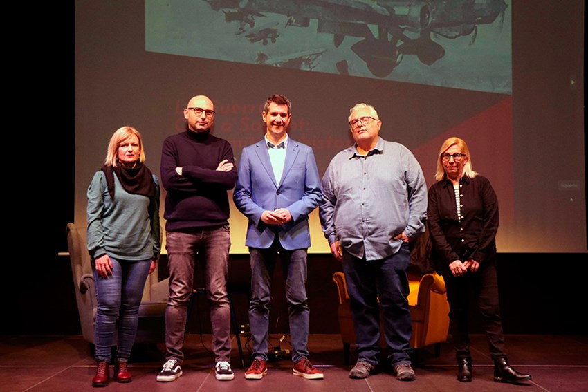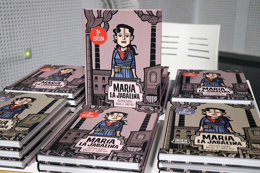 Al arranque institucional le siguieron las ponencias Enseñar la Guerra Civil en Secundaria: entre la realidad y el deseo, a cargo de Antonio Ortiz del IES María Moliner; La importància dels centres d’interpretació i els conjunts memorials de la Guerra Civil: arqueologia, memòria i pedagogia, por Lara Cardona, del conjunto memorial Línia XYZ de Almenara; Conéixer la història a través del pòdcast, de Xavier Martínez, director de Arkana Media Entertainment; y, finalmente, una entrevista proyectada a Cristina Durán y Miguel Ángel Giner, autores del cómic María La Jabalina.