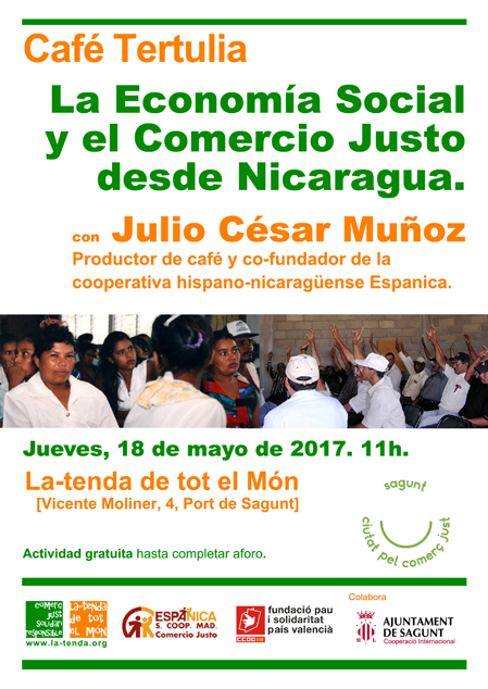Julio César Múñoz, de visita en España invitado por la cooperativa de comercio justo Espanica, presentará en la-tenda el proyecto de economía social que desarrollan en las cooperativas de Nicaragua, con especial hincapié en la producción ecológica y en el empoderamiento de las mujeres y la prevención de la violencia de género en el contexto nicaragüense.
