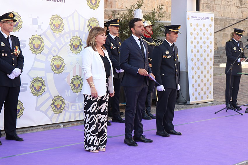 El acto también ha contado con la presencia de numerosas autoridades entre las que se contaban componentes de la Corporación Municipal de Sagunto, la jueza decana de los juzgados de Sagunto, el comisario del Cuerpo Nacional de Policía, el capitán de la Guardia Civil, y otros miembros de las fuerzas de seguridad y prevención como Bomberos, Guardia Rural y Protección Civil, el presidente de la Asociación de Moros y Cristianos de Sagunto, la Fallera Mayor de Sagunto y el presidente de la Federación Junta Fallera de Sagunto.