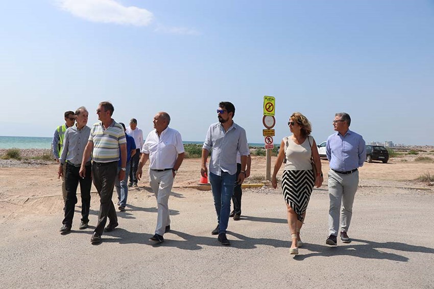 El concejal de Playas del Ayuntamiento de Sagunto, Roberto Rovira; y la teniente de alcalde de Almardà, Nuria Carbó, han visitado las obras de actuación sobre el litoral de la marjal dels Moros. A la jornada también ha acudido el director general de Aguas de la Generalitat Valenciana, Manuel Aldeguer, y otros funcionarios públicos.
