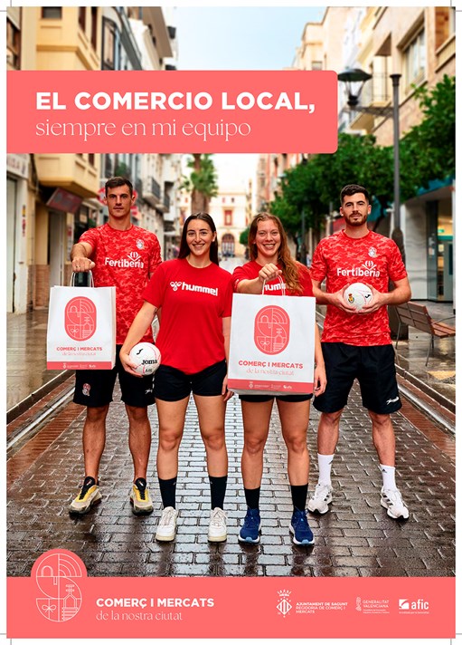 Trabajo en equipo, sacrificio, excelencia, humanidad, no son solo los valores que definen el comercio de Sagunto. Estos valores también son compartidos por figuras de la gastronomía como la chef estrella Michelin Vicky Sevilla, o las jugadoras y los jugadores de los equipos profesionales de balonmano de la ciudad de Sagunto: el Club Balonmano Morvedre y el Club Balonmano Puerto Sagunto. Todos juntos, protagonizan las diferentes campañas puestas en marcha en septiembre por la Concejalía de Comercio y Mercados del Ayuntamiento de Sagunto.