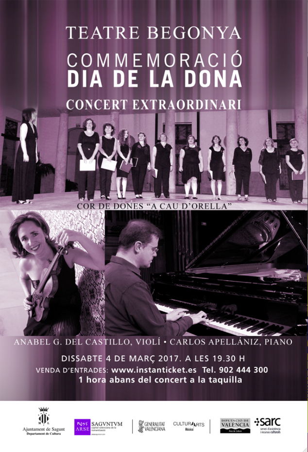 Bajo la dirección de Mónica Perales, la violinista Anabel García del Castillo musicalizará el concierto. Hija del maestro E. García Asensio, esta violinista ha actuado como solista en prestigiosas orquestas y ha sido galardonada con el premio El Ojo Crítico de RNE. También ha impartido cursos, desarrollando una gran actividad como docente, y ha grabado discos como solista y como integrante de grupos de cámara. Junto a García estará Carlos Apellániz quien tocará el piano de Begoña en el segundo concierto de este instrumento después de que el 14 de enero se estrenara el ciclo Recuperació del Patrimoni Musical (#PianoBegonya).