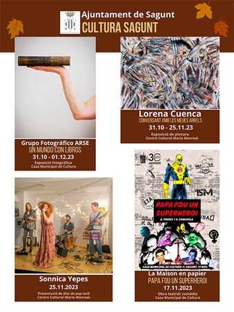 La delegació de Cultura de l'Ajuntament de Sagunt ha presentat en roda de premsa algunes de les representacions i exposicions que es duran a terme durant la tardor com a part de la programació tardorenca de Cultura. En la presentació han estat presents la regidora de Cultura, Ana María Quesada, així com representants de les diverses actuacions. Concretament, s'han presentat les exposicions "Un mundo con libros", del Grup Fotogràfic ARSE; i "Conversant amb les meues arrels", de Lorena Cuenca; i l'obra teatral Papa fou un superheroi, de ‘La Maison en Papier’.
