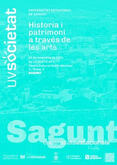 El pròxim divendres 20 de desembre, el Centre Cultural Mario Monreal de Sagunt serà l'escenari d'una nova edició de la Jornada de la Universitat Estacional Sagunt, sota el títol Història i patrimoni a través de les arts. Este esdeveniment, coordinat pel departament d'Universitat, Ciència i Innovació de l'Ajuntament de Sagunt i la Universitat de València a través del Vicerrectorat de Cultura i Societat, es desenvoluparà de 10.00 a 14.00 hores i té com a objectiu explorar com diferents disciplines artístiques han contribuït a la interpretació i difusió del patrimoni històric.