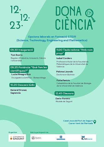 El pròxim 12 de desembre, el Casal Jove de Port de Sagunt acollirà la jornada ‘Dona en Ciència’ que impulsa l'ajuntament de Sagunt a través de la seua regidoria d'Indústria, Universitat, Ciència i Innovació.